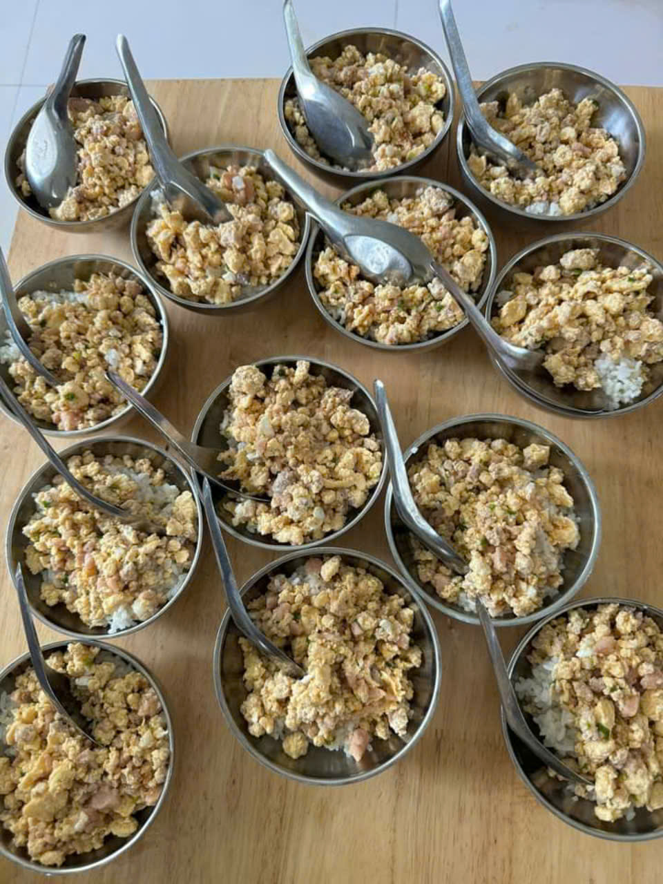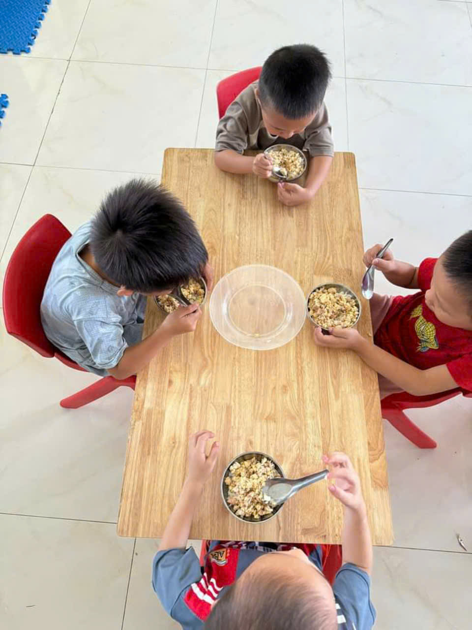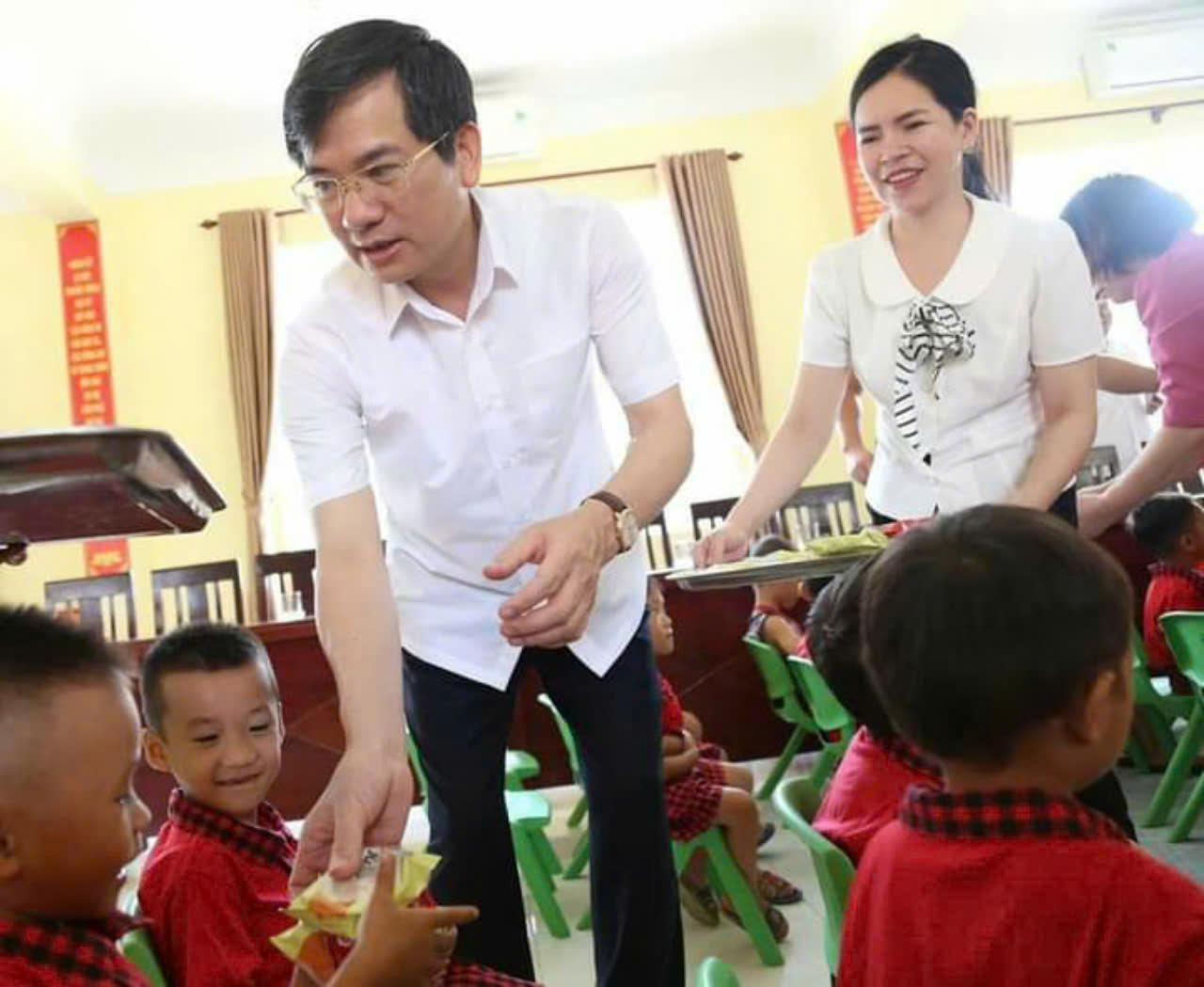 Với món quà ý nghĩa đó lãnh đạo nhà trường đã chỉ đạo nhân viên nấu ăn đưa thêm thịt hộp vào cải thiện bữa ăn cho bé trong bữa trưa ngày hôm nay. Bánh kẹo và thịt hộp sẽ được cô giáo tiếp tục phát về các điểm trường cho các cháu.