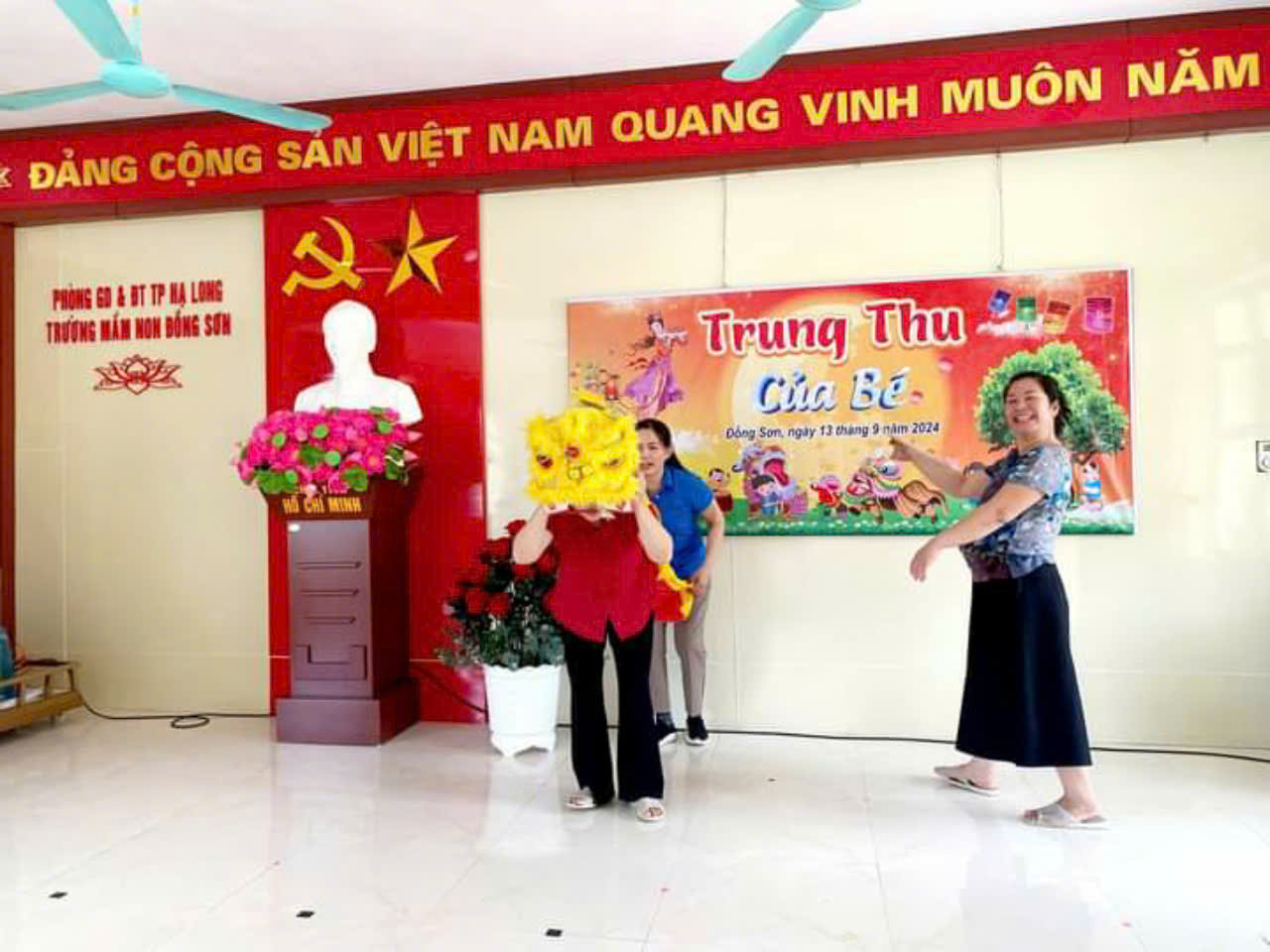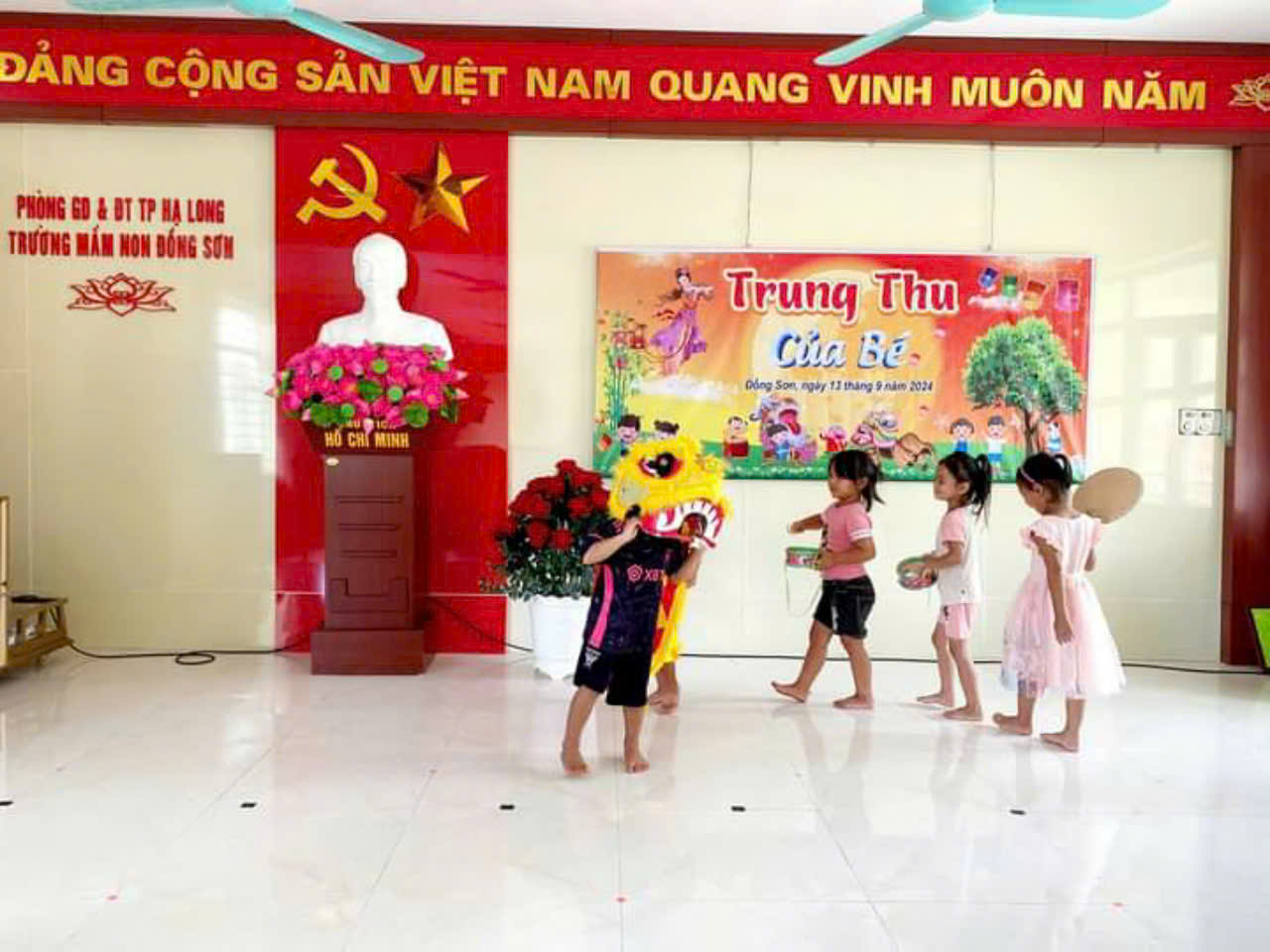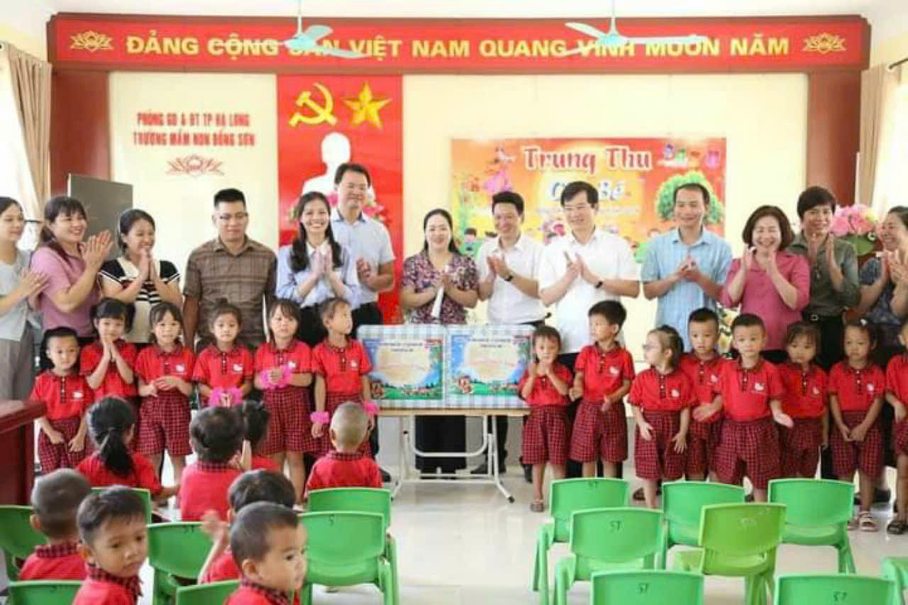 Ngày 13/9/2024 trường Mầm non Đồng Sơn vinh dự được đón đ/c Vũ Quyết Tiến – Uỷ viên BTV Tỉnh ủy, Bí thư Thành uỷ Hạ Long, Đ/c Vi Bích Hạnh – Thành ủy viên, Trưởng PGDĐT thành phố cùng đại diện các đ/c lãnh đạo các phòng ban, lãnh đạo Đảng ủy và UBND xã Đồng Sơn đã đến thăm hỏi động viên cô trò nhà trường sau cơn bão số 3 và tặng quà Tết Trung thu cho các cháu và 50 hộp thịt cho cô và trò nhà trường.